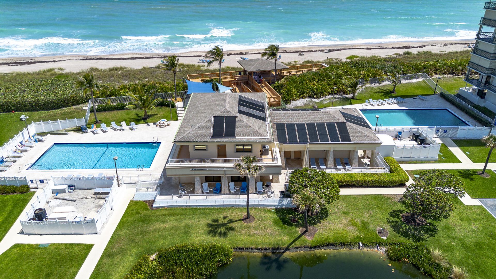 Price Reduced! Oceanfront Paradise on Hutchinson Island-One of the Lowest HOA fees in Jensen Beach! This beautifully updated 1-bedroom, 2-bath oceanfront condo is located in one of the most desirable communities on Hutchinson Island-offering one of the lowest HOA fees in the area with no assessments for 2025! Enjoy panoramic ocean views from this 3rd-floor unit, perfectly positioned in the middle of the building, away from pool noise, and just steps from the elevator for easy access. Construction enhancements are nearly complete (estimated Sept), including new rebar reinforcement throughout the building, balcony, and patio, ensuring long-term peace of mind. The Milestone Inspection has been completed. Step inside to discover a freshly painted interior with stylish updates throughout. The remodeled kitchen features painted cabinetry, new quartz countertops, modern moldings, and new light fixtures throughout. The open layout has ceramic tile flooring throughout, and the living space flows seamlessly onto your private balcony with the best view in the building. The spacious bedroom offers a built-out soundproof wall for the AC giving you added tranquility, custom closet, plantation shutters, and a new barn door for a modern touch. Both bathrooms have been tastefully remodeled with new plumbing and thoughtful finishes. The AC is just 5 years old, with new hot water heater piping and a replaced main line for added efficiency. Other highlights include: Motorized sunscreens, Hurricane shutters, Ground floor storage, Ample parking. Community amenities galore: 2 heated pools, hot tub, tennis, pickleball, bocce, clubhouse, fitness center, social rooms, beach access, fish cleaning station, community garden, and 24/7 security. HOA covers: Building insurance, cable, internet, pest control, and more. Whether you're looking for a serene beachfront escape or a worry-free full-time residence, this condo delivers unbeatable value, luxury updates, and a lifestyle that's second to none. Schedule your private showing today and claim your front-row seat to oceanfront living!