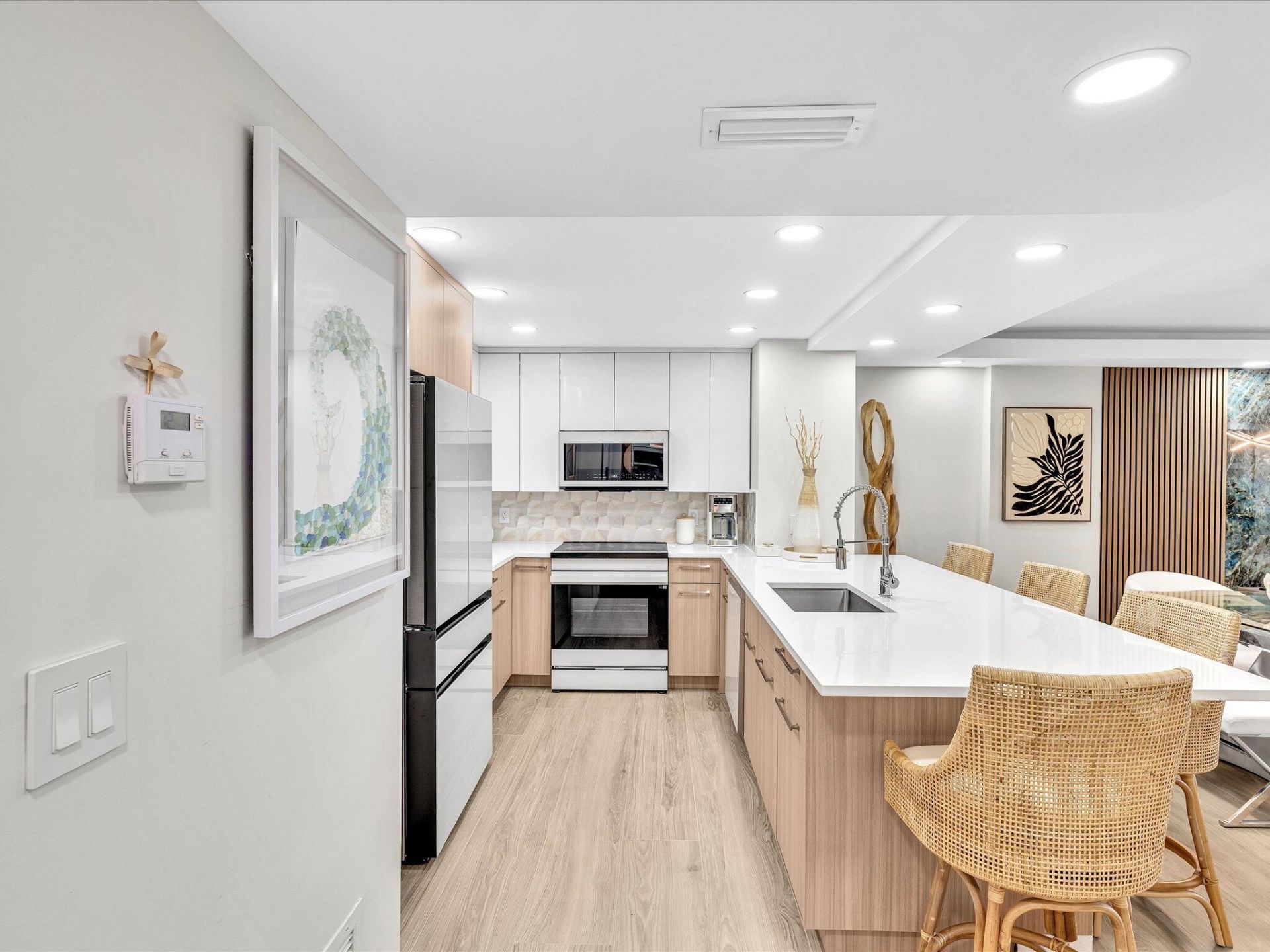 From furniture to flatware, everything is included-offering a true turnkey opportunity. Ideally situated along the prestigious Hillsboro Mile, this one-of-a-kind 1-bedroom, 1.5-bath residence w/ a versatile convertible second bedroom/bonus room has been meticulously renovated from top to bottom. Over $150,000 has been invested in high-end renovations, w/ an additional $20,000 in furnishings, d?cor, and finishes-all thoughtfully selected to complement the space. The state-of-the-art kitchen showcases sleek quartz countertops, custom cabinetry, and top-of-the-line appliances, seamlessly blending modern design w/ everyday functionality. Contemporary fixtures throughout enhance the home's warm, spa-like ambiance, delivering the perfect balance of style and comfort. This is a true must see! The flexible bonus room is ideal as a guest suite-featuring a king-size sleeper sofa and closet-or as a sophisticated home office tailored for today's professional lifestyle. Every detail has been carefully considered, maximizing both luxury and livability in every square inch. Residents will also appreciate some of the lowest condo fees along the coast at just $798 per month, along with the peace of mind of fully funded reserves and all special assessments already paid in full by the seller. Additional highlights include private beach access and covered parking beneath the building-completing this exceptional coastal offering.