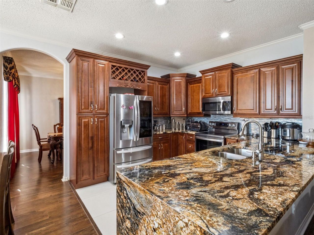 Welcome to 1260 Darnaby Way in the gated Harbor Lakes community of Orlando! Enter this updated home via new paver driveway and sidewalk into an elegant formal living room which flows to a formal dining.Remodeled kitchen features new cabinets, upscale granite countertops with waterfall edge and pop-up charging station, 42 uppers with crown molding, high-end LG stainless appliances and eat-in kitchen area. Kitchen opens to large family room; powder bath completes first floor.Upstairs: spacious master suite, airy loft with bonus office space or reading nook, three more large bedrooms. LVP flooring throughout both levels with tile in kitchen.Over 3,000 sq ft plus huge screened patio with lake views and no rear neighbors. Paid-off solar offers near 100% electric bill offset. Whole home water filtration system can remain (negotiable). Over $100k in upgrades including pavers, kitchen and bath updates, 2021 roof, new water heater, and 5-year-old AC. Conveniently located near theme parks, Lake Nona, shopping, the Loop, and major highways with community pool and playground access.