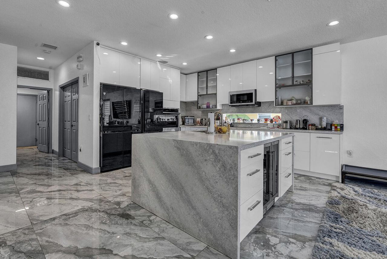 Stunning lakefront Avalon model in Saturnia Isles featuring 6 bedrooms plus office, 4 full baths, 3-car garage, and over $200K in upgrades. Bright open floor plan with updated eat-in kitchen showcasing high-gloss European cabinetry, quartz countertops, center island, and new Samsung appliances. Spacious primary suite offers a sitting area, dual walk-in closets, and private balcony with sweeping lake views. Enjoy a fenced tropical backyard with refinished saltwater pool in Glass Azzure tile, covered patio, and serene water views. Large-format porcelain tile throughout the first floor plus new washer/dryer. Tenant month-to-month-may stay or vacate. Resort-style community amenities.
