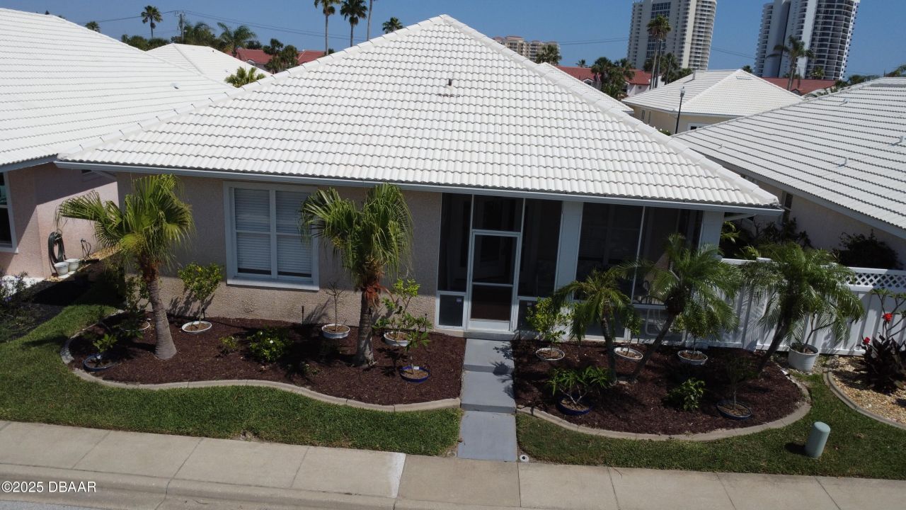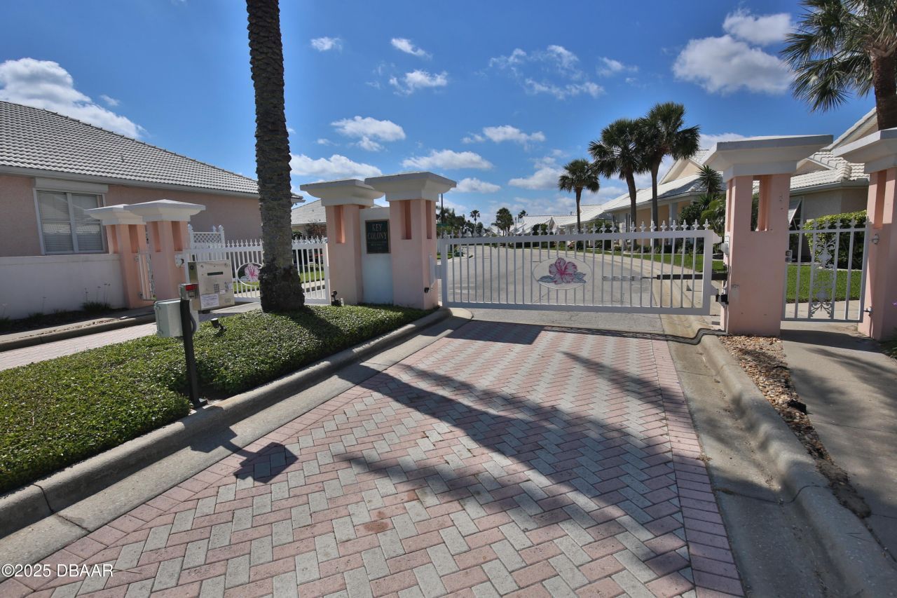 This home is in the coveted KEY COLONY GATED COMMUNITY in DAYTONA BEACH SHORES. Imagine resort-style living RIGHT ACROSS THE STREET FROM THE BEACH, where the HOA HANDLES LAWN MAINTENANCE, IRRIGATION, LAWN PEST CONTROL, GATE, POOL & TENNIS/PICKEBALL COURTS. This 3 bedroom/2 bath is beautifully maintained and offers a LARGE LIVING AREA, DINING room, and EAT-IN KITCHEN. You'll find each of the bedrooms offer serene spaces and there is PLENTY OF STORAGE in the WALK-IN CLOSETS. There is also a large utility room with laundry tub & shelving located off of the kitchen area. The appointments in this gem are simply beautiful down to the custom, architectural enhancement lighting around the exterior. It boasts front and rear screened porches along with a rear patio to enjoy the beautiful breezes and the garage is tucked in the back so that you can store all of those toys. ENJOY THE CAREFREE LIFE where LIFE IS BETTER In DAYTONA BEACH SHORES