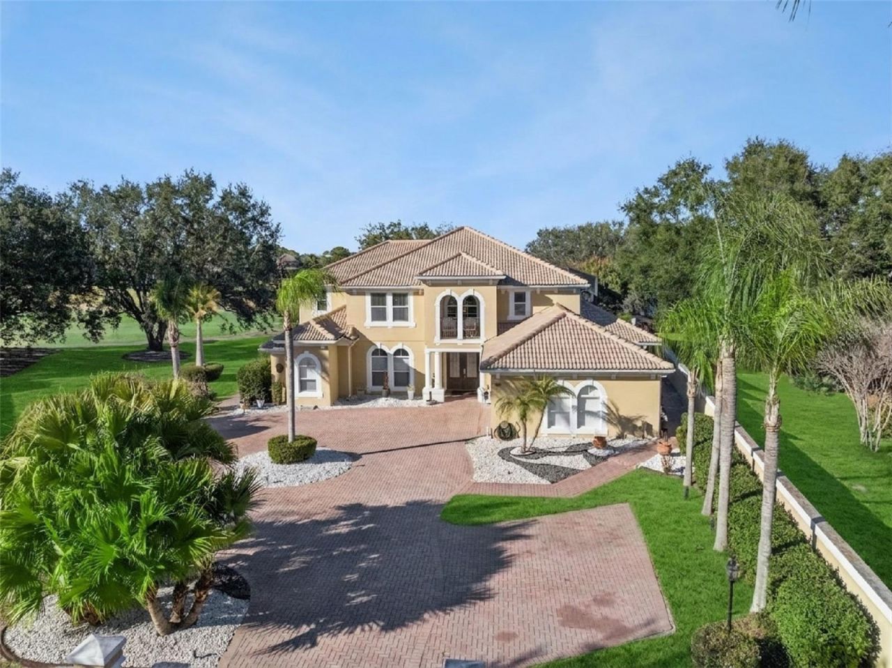 Premier golf-front residence in the gated community of Palma Vista, now offered at a newly reduced price of $1,395,000 from $1,500,000, presenting a compelling opportunity to own one of the most desirable lots in the neighborhood. Situated on over half an acre at the end of a quiet cul-de-sac along the 14th hole, this property offers direct golf course access and sweeping views of the infinity pool, fairway, and tranquil water backdrop from the main living areas and balcony. A rare private motor court creates a grand sense of arrival and enhances the home's exclusivity. Significant recent improvements include a brand new tile roof installed in January 2026, newer A/C systems from 2023 and 2024, and a recently resurfaced pool, providing substantial value and peace of mind compared to other properties where these costly updates may still be needed. With its exceptional lot, privacy, and combination of golf and water views, this home represents one of the finest locations in Palma Vista. Some images include virtual staging and video contains AI-enhanced or virtually staged elements for illustrative purposes only.