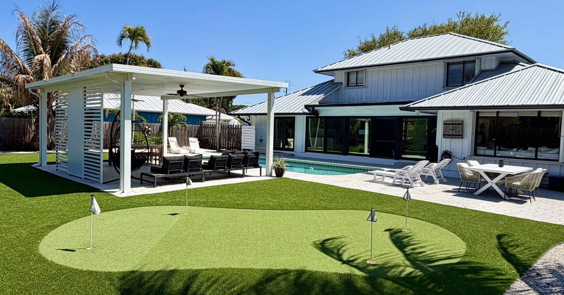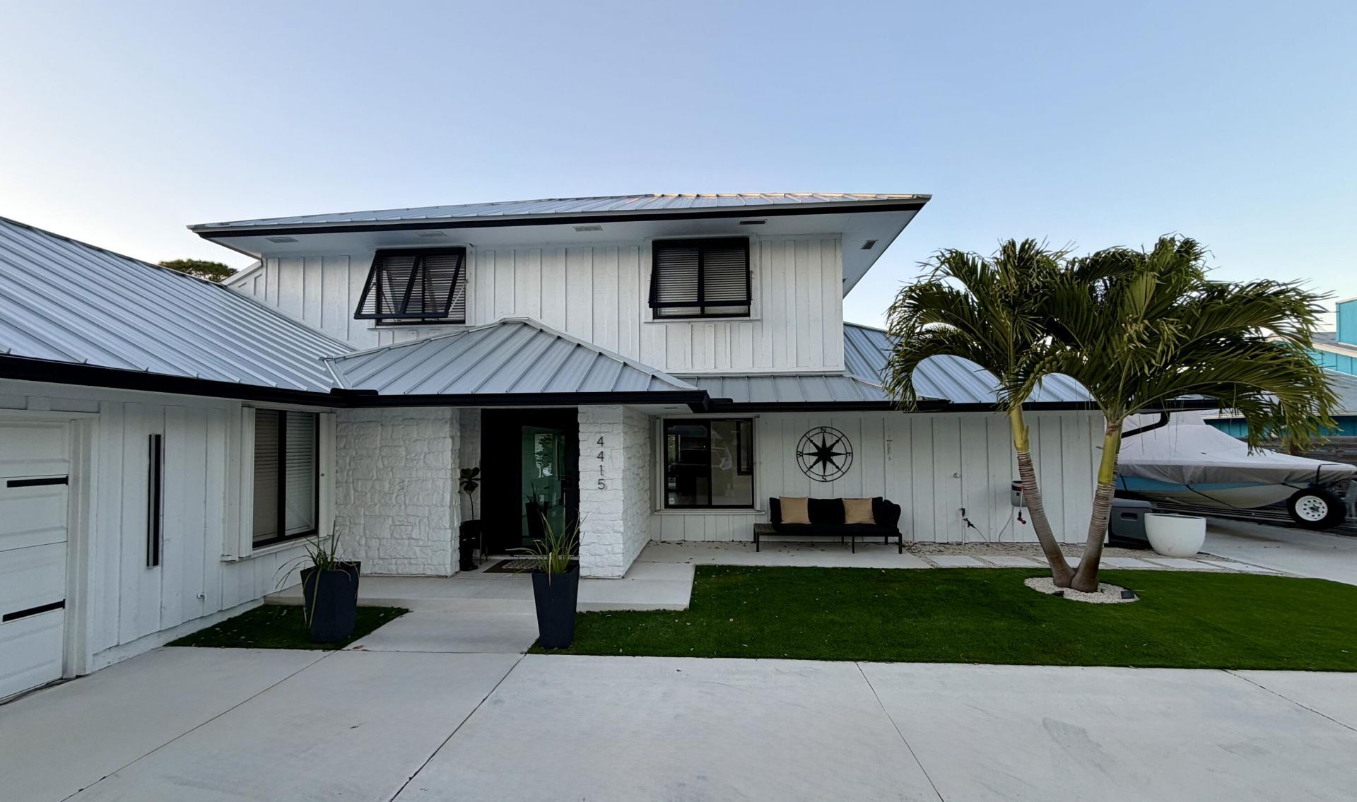 This exceptional home in the highly sought-after Tequesta area is situated on a quiet cul-de-sac and offers a variety of premium features. Recent upgrades include a three-year-old metal roof and a new driveway with ample parking for an RV, boat, or multiple vehicles. The home is well-protected with an impact glass front door, sliding glass doors, and accordion shutters for the remaining windows. The new appliances include double ovens, oversized built-in separate refrigerator and freezer units, wine refrigerator in bar area, amazing new washer/dryer combo unit, 2 A/C units, one of which is only a year old. The main ensuite bath features a soaking tub, walk-in shower and double vanities. A full powder room with shower and the second-floor bath has a tub/shower combination. Beautiful family room and games rooms make family time fun! This home has everything, is the perfect home for entertaining and is surrounded by multi-million dollars mansions! Move in Ready! Must see!