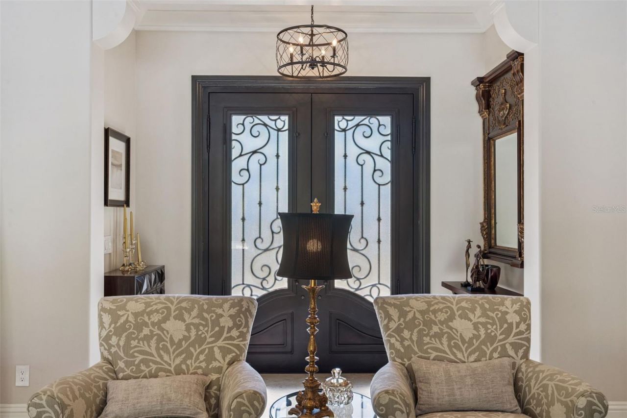STUNNING CUSTOM ESTATE in the EXCLUSIVE GATED community of Sawyer Sound - a private enclave of 20 luxury homes, ideally located across the street from Windermere Prep, and close to excellent dining and premiere entertainment. Built under the meticulous supervision of its owners, one of whom is an accomplished interior designer, this home showcases curated exceptional quality finishes and craftsmanship, and attention to detail. With natural MARBLE FLOORS, soaring ceilings adorned with real WOOD BEAMS, solid-core interior doors, designer lighting, thick crown moulding, beautiful CUSTOM window treatments and appealing color schemes, you'll find LUXURY in every detail. The chef's kitchen is a masterpiece with rare natural stone CRISTALLO QUARTZITE counters featuring under lighting for a warm dramatic glow, custom wood cabinets, a COPPER farmhouse sink, imported fixtures, and all THERMADOR appliances - including an 8 burner NATURAL GAS range and a built in STEAM OVEN that functions as microwave, convection oven, and air fryer. Gatherings in this home are show stoppers with STACKED SLIDING DOORS that disappear to create a seamless transition to the lanai, pool area with gorgeous NATURAL TRAVERTINE, REMOTE CONTROLLED RETRACTABLE SCREENS, NATURAL GAS FIREPLACE, SUMMER KITCHEN, SALT WATER HEATED POOL, and a LUSHLY LANDSCAPED backyard oasis with a tiki hut - LIVE EVERY DAY LIKE A VACATION! Enjoy the comfort of TWO PRIMARY SUITES, each with spa style luxury bathrooms offering large showers, soaking tubs and custom walk-in closets. The main suite has a bedroom in close proximity that would be an ideal nursery, library or office. Two more bedrooms share a beautifully designed bathroom and each has a walk-in custom closet. Rooms are adorned with real wood PLANTATION SHUTTERS and/or DESIGNER MADE WINDOW TREATMENTS, including silk lined drapes with darkening fabric in the primary suite. Practical luxury continues with a huge laundry room with granite counters, custom cabinets, closet, sink and a folding area. The pantry doubles as a thick concrete reinforced 'SAFE ROOM equipped with a phone line and additional security and safety features. ENTIRE HOME NATURAL GAS GENERATOR ensures no interruption to your comfort. Every detail has been thoughtfully considered - from the water softener, energy efficient foam insulation, and double paned windows to the climate controlled three car garage with an EV car charger, epoxy floor, custom storage, large safe, and bike racks. SMART HOME technology allows you to control all systems from your phone - the thermostat, pool, lighting, interior and exterior cameras, and music. COME SEE WHAT SETS THIS MASTERPIECE APART FROM THE REST! EVERY SPACE IN THIS HOMe TELLS A STORY OF LUXURY, DESIGN AND COMFORT - CRAFTED FOR THOSE WHO EXPECT THE BEST! All measurements should be verified by buyer.