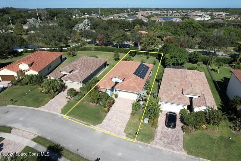 Custom 2006 CBS Mediterranean-style home with barrel tile roof, impact windows, and solar energy averaging $88/mo. Open 1,996 sq ft plan with cathedral ceilings, split bedrooms, tile in main living areas, remodeled guest bath, and a kitchen with 42 cabinets and granite counters. Large screened porch overlooking private preserve. Fresh exterior paint. Gated community with low HOA fees that cover full lawn care, fitness center, heated pool, tennis/pickleball & more. Minutes to beaches, dining, and shopping.