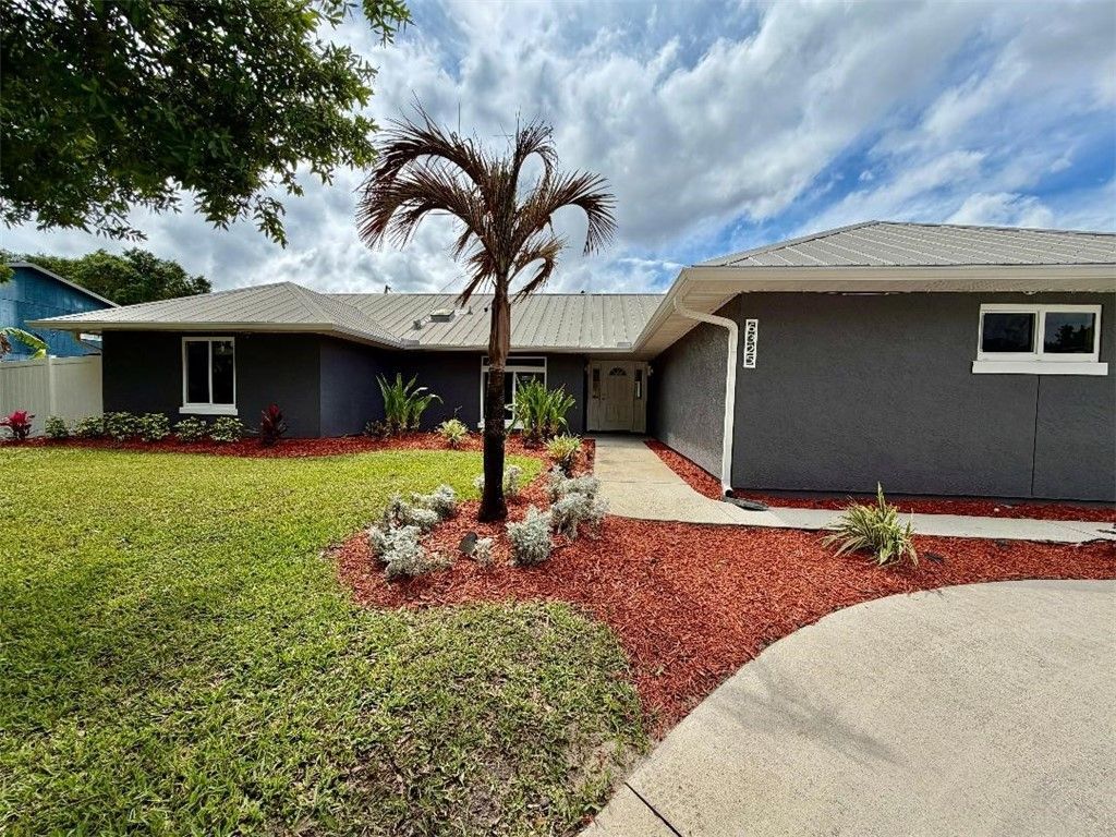 Welcome to your private Vero Beach retreat on a quiet, dead-end street with no HOA. This upgraded 3-bed, 2-bath split floor plan offers 1,828 sq ft on a 1/3 acre fenced lot. Cathedral ceilings, granite kitchen with stainless appliances, and remodeled baths including a spa-style primary suite with soaking tub, walk-in shower, and steam system. Features include impact windows, metal roof, whole-home generator, and smart-home upgrades. Enjoy a 14??28 pool, covered patio, fire pit, tropical landscaping, 16 x 10 shed, and space for RV or boat parking?minutes from shopping, dining, and the beach.