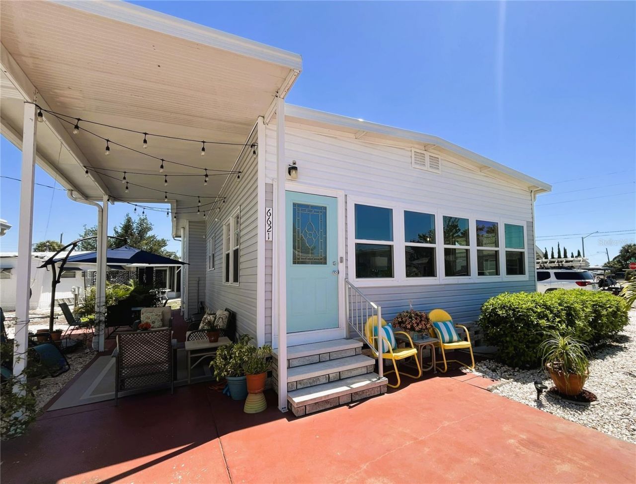 Elevated, expanded, and filled with light. This 2-bedroom, 2-bath home combines the advantage of elevated construction with a modern open floor plan. Sweeping hurricane-impact windows span the front and side of the home, flooding the space with natural light and enhancing the bright, airy feel. Interior finishes blend luxury vinyl flooring, drywall, and shiplap accents for a clean coastal aesthetic. The kitchen features deep cabinetry, newer appliances, and abundant storage designed for everyday functionality. A generously sized flex space adds exceptional versatility and includes a full second bathroom with a new shower unit and sink, along with dedicated storage and workshop areas. Above, full attic storage extends across the entire 11 x 14 flex space-an outstanding bonus for organization and seasonal use.Major updates completed in 2023 include HVAC and ductwork, electrical panel upgrade, water heater, dual-sink bathroom vanity, and baseboards. Additional improvements such as doors, windows, and brick pavers reflect the level of care and investment throughout the property. Complete list of numerous improvements available. Located in Trailer Estates, a Special Park and Recreation District governed under Chapter 418, Florida Statutes, residents own their land-no lot rent, CDD, or HOA fees. The annual park tax covers cable, high-speed internet, trash pickup, fire and rescue services, and access to outstanding amenities including a marina with rentable boat slips, private beach, pool, hot tub, fitness center, shuffleboard, bocce ball, pickleball, woodshop, and nearly 60 active clubs and social events. Experience one of Sarasota Bay's most vibrant and welcoming 55+ communities.