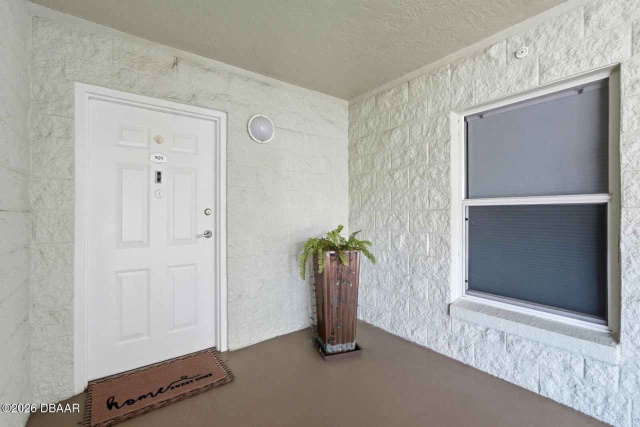 Welcome to waterfront living at its finest in this beautifully updated first-floor condo located along the Halifax River in Daytona Beach. This move-in-ready unit offers the perfect blend of comfort, style, and convenience with stunning water views just steps from your back patio.Inside, you'll find a bright and airy interior featuring a modernized kitchen with sleek white cabinetry, stainless steel appliances, subway tile backsplash, and ample counter space. The open living area is filled with natural light and flows seamlessly to your private outdoor space, perfect for enjoying peaceful riverfront mornings or evening sunsets.The spacious bedroom provides a cozy retreat, while the updated finishes throughout give the home a fresh, contemporary feel. Being on the ground floor allows for easy access and true indoor-outdoor living.This well-maintained community features a sparkling pool, beautifully landscaped grounds, and direct access to the Halifax River. Enjoy relaxing by the water, fishing off the dock, or simply soaking in the coastal lifestyle.Conveniently located just minutes from the beach, shopping, dining, and all that Daytona Beach has to offer, this property is ideal as a primary residence, vacation getaway, or investment opportunity.Don't miss your chance to own a slice of waterfront paradise!