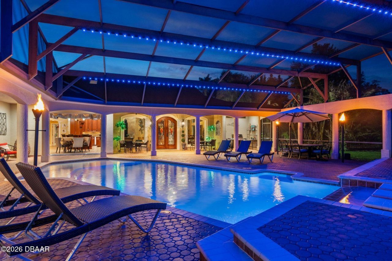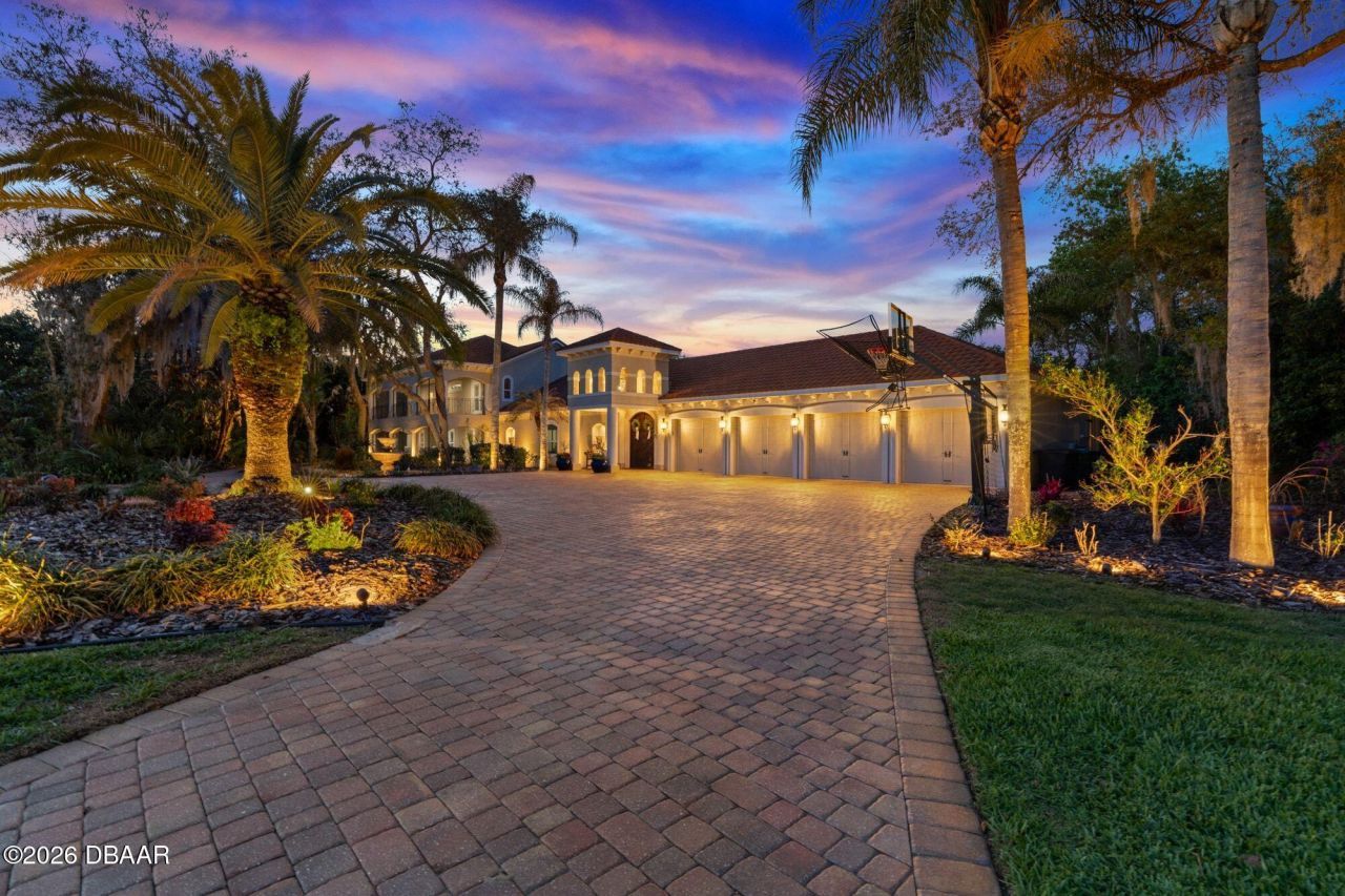 A TRUE MASTERPIECE - This fully upgraded Mediterranean compound spans 5,825 square feet surrounding a STUNNING courtyard built only for the most refined palates -- all privately positioned on a cul-de-sac, with no HOA, on 1.13 acres in one of Port Orange's top-rated school zones.Designed around the most inviting pool oasis, this estate features a versatile layout ideal for multi-generational living and long term guests, with each spacious bedroom offering an en-suite bath. Expansive living areas provide ample space for entertaining at scale and everyday comfort, while the thoughtful upgrades make it an unforgettable statement. Current owners invested significantly in ideal improvements, including:? Remodeled primary bath? Remodeled junior en-suite ? Two tankless gas water heaters ? Whole-house water filtration system ? New Café appliances in the bar & Bosch dishwasher? Mudroom built-in, Closet built-ins, Murphy bed New pool pump and wireless pool controls Exterior LED lighting, with Speakers & VideoThese upgrades provide true turn-key luxury with minimal deferred maintenance. The 4-car garage with oversized attics offer exceptional storage and flexibility. Located minutes from top-rated schools, the Pavilion, the Intracoastal and pristine beaches, this estate combines architectural character with modern mechanical upgrades in a highly sought-after location.Private showings available by appointment only.