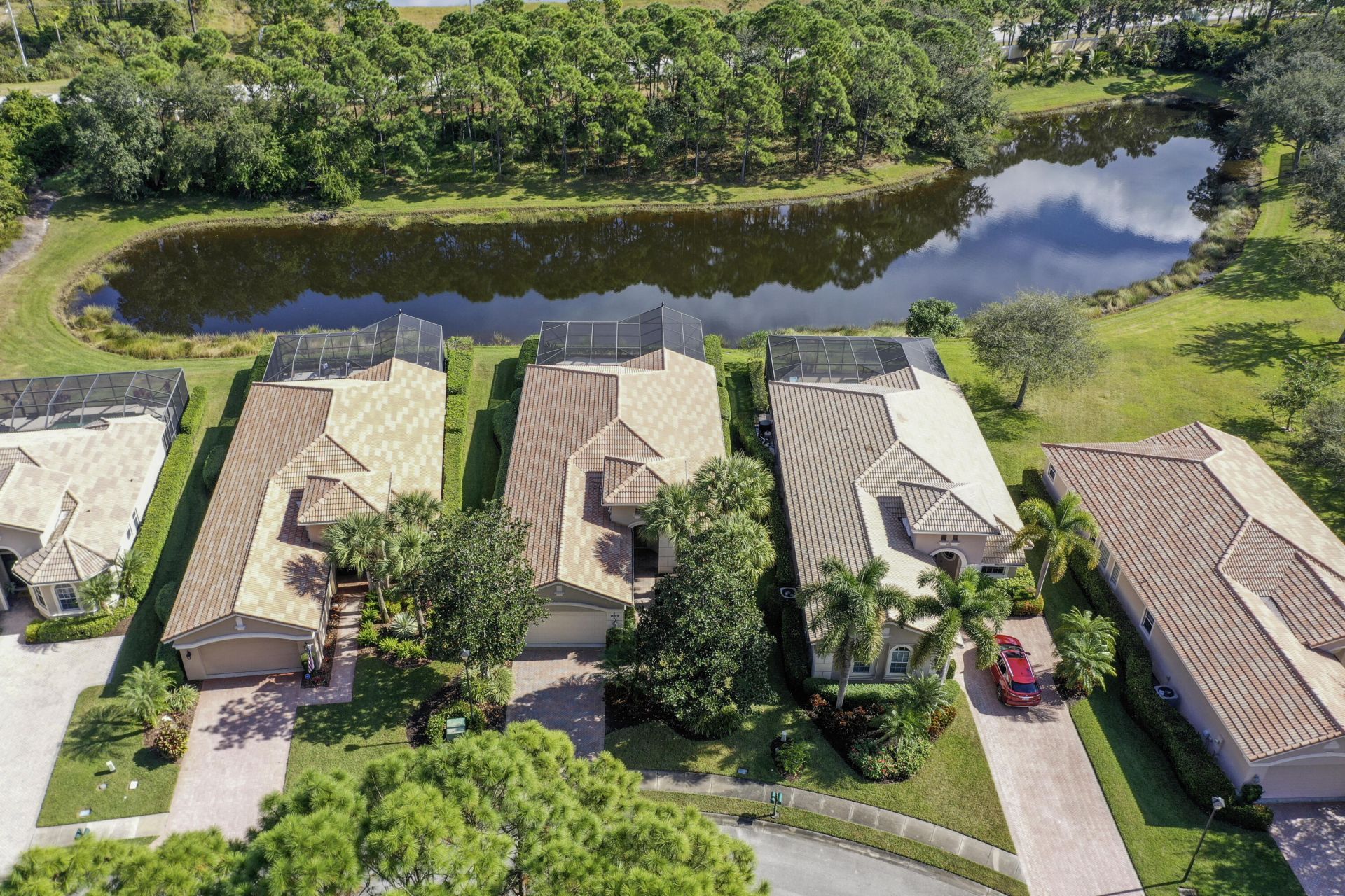 2/2+ den/3rd Bedroom LAKEFRONT POOL HOME THAT OFFERS GREAT PRIVACY AND GREENSPACE! The open Fairview model floorplan boasting spacious rooms and great natural light from the wall of sliders leading to the newly screened lanai, a large pool and covered space for entertaining. This home has been very gently lived in and the neutral palette allows opportunity to customize to your taste. Newer SS appliances, 42'' wood cabinets, granite counters, large pantry. Spacious island w/ bar seating is open to the vaulted dining and great room. The oversize main suite overlooks the pool and lake. Dual walk in closets lead to the oversize en suite with spa tub, separate shower, private water closet and dual sinks. The 2nd bedroom and DEN/OFFICE/3RD BR have easy access to the guest bath. The HOA includes lawncare, cable, internet, Island Club amenities which include Pool, Playground, Gym, Tennis and much more. Optional memberships to exceptional world class PGA golf courses, lush and mature green space, easy access to all major roads, amazing dining and shopping options and state of the art medical care options.